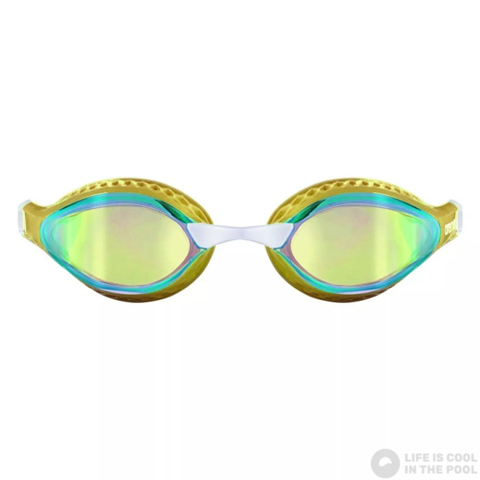 Arena Air-Speed Mirror posiadają unikalną konstrukcję przypominającą plaster miodu. Dzięki temu są one bardziej szczelne a nacisk na oczy jest mniejszy. Są lekkie i miękkie dla oczu, co jest wielką zaletą w okularach do pływania zawodniczego. Kompresja bardzo dobrze dopasowuje się do twarzy.